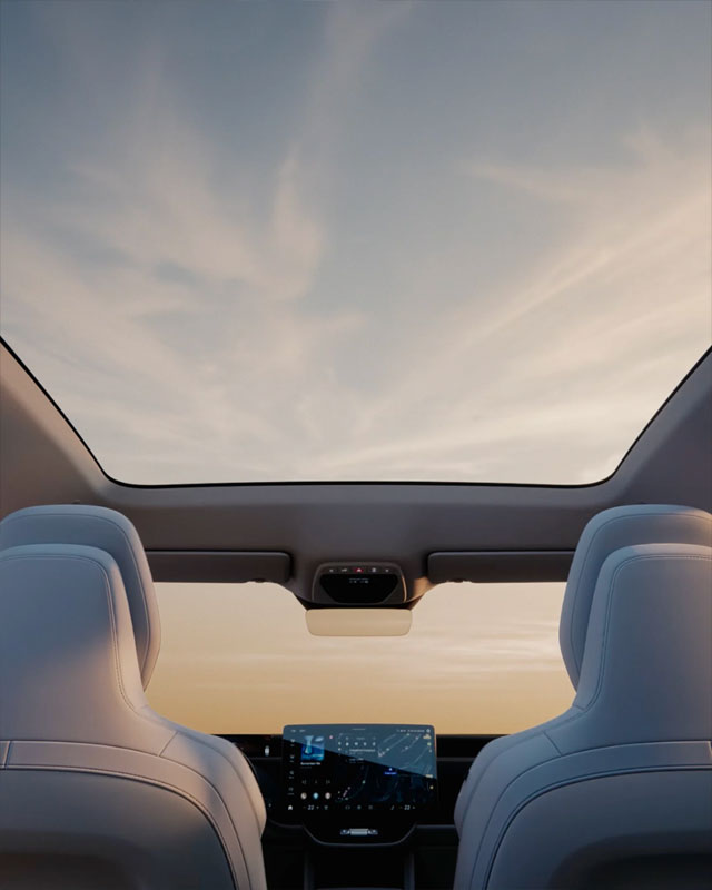 A fény gyengéden áramlik be a panorámatetőn, szellős, nyugodt légkört teremtve a fedélzeten ülők számára. A sötét színű laminált üveg a nap hőjének mintegy 80 százalékát és az UV-sugarak akár 99,9 százalékát is blokkolja, míg az infravörös réteg csökkenti a tükröződést, hogy napfényes időben is kényelmesen utazhasson.